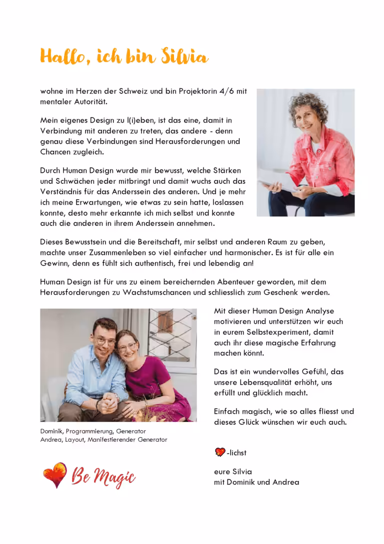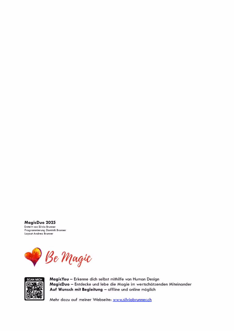 3 Teilen mit allen Details ihres einzigartigen Designs wie im MagicYou - Zusätzlich in Teil 4 alle Composite-Verbindungen, die dir/euch aufzeigen, wo ihr euch reibt, herausfordert, ergänzt oder völlig im Einklang seid
