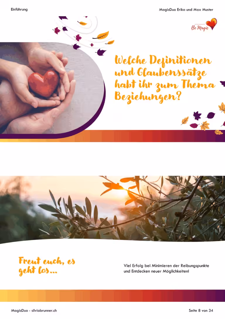 - Wertvolle Inputs, die dir/euch helfen, die gewonnenen Erkenntnisse gewinnbringend im Alltag umzusetzen